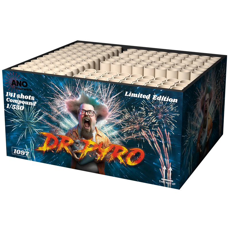 Dr. Pyros Wahnsinn hat das ultimative Feuerwerkstier hervorgebracht: 141 Schüsse, die so brutal sind, dass sie den Himmel in Fetzen reißen. Schnapp dir deine Ohrstöpsel, denn diese limitierte Auflage schmiert ein dickes Finale über die Nacht mit einer rohen, unzensierten Explosion.